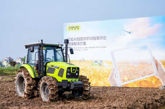 △活动现场展示的中联智慧农业数据采集设备及高端大马力拖拉机