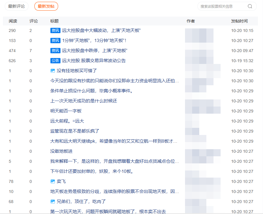 “卡位远大控股,干得漂亮!”“天地天?我不信,没有几个股成功过。”“没有挂地板可惜了!”“明天能否一字板?”“有格局,主力实力可以!”......股吧中,经历冰火两重天的投资者议论纷纷。