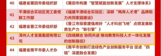 漳州发展:漳州人才发展集团有限公司报送案例入选全国创新榜单