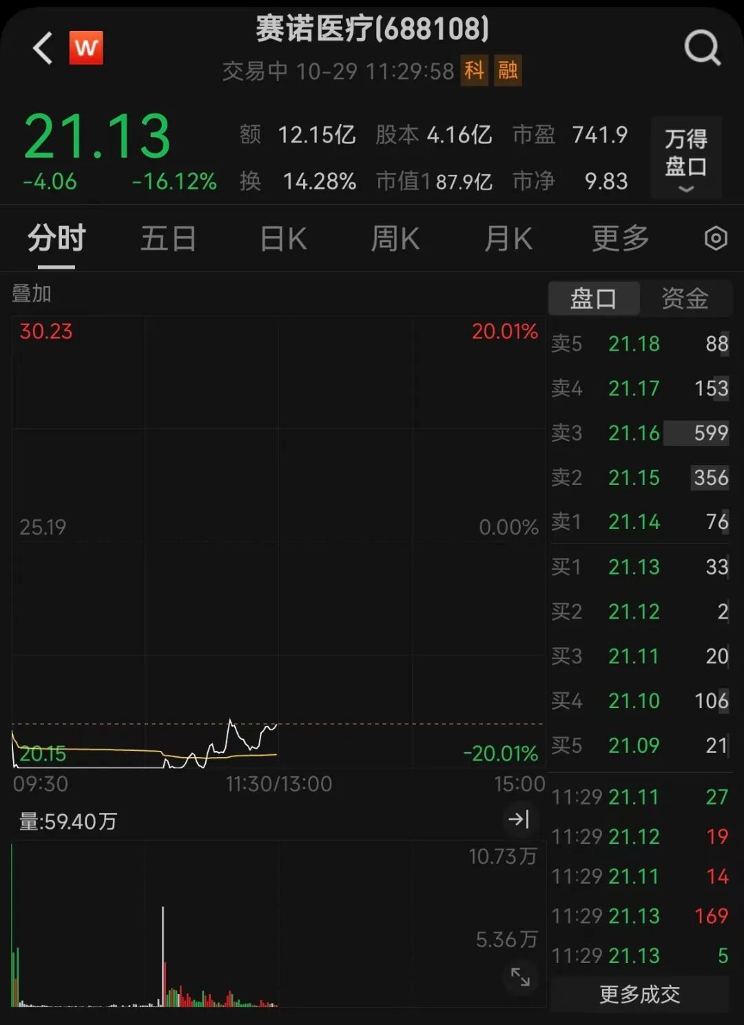 不予注册!赛诺医疗,盘中“20CM”跌停