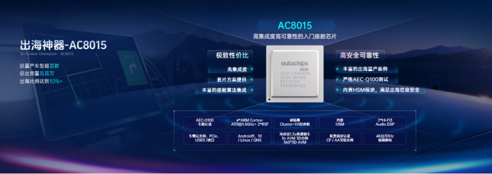 AC8015/AC8025座舱域控成为出海战略的“技术锚点”。这套方案不仅实现成本优化10%-20%,更以“一套硬件兼容全球”的理念,破解了车企出海面临的区域适配难题。