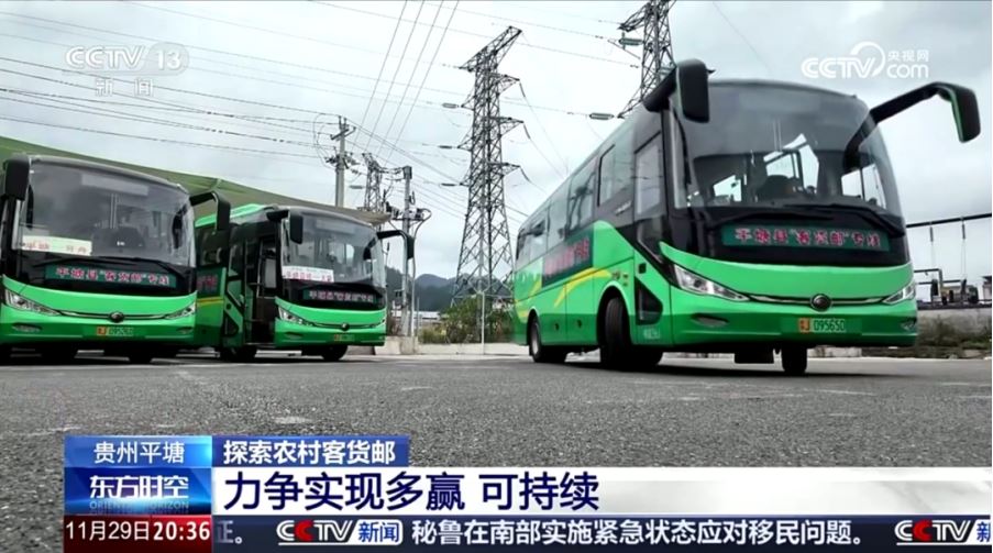 11月29日,CCTV13频道《东方时空》栏目聚焦平塘县“客货邮”公交带货新模式,对其进行了专题报道,其中宇通纯电动客车以大运力、低能耗等优势助力“公交+快递”融合发展新模式。