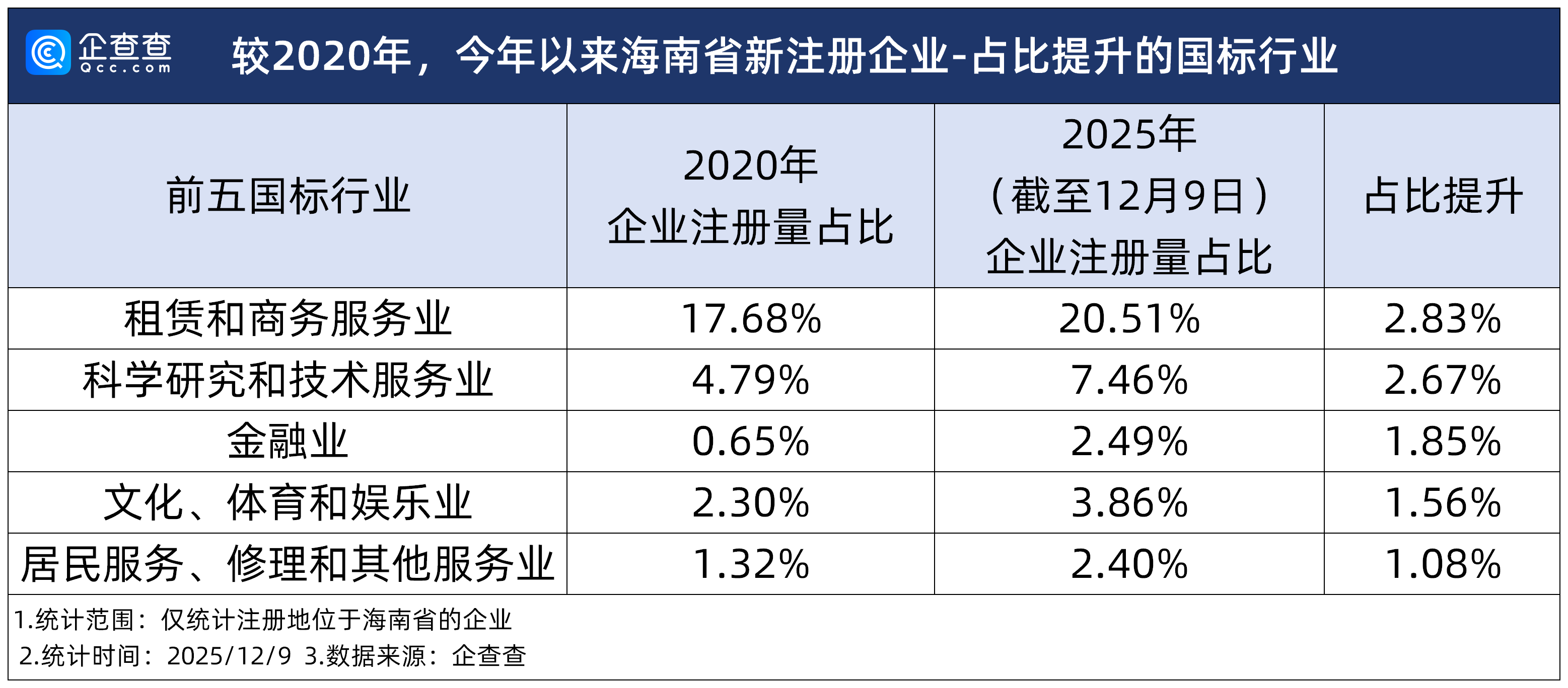 企查查数据显示,较2020年,海南省今年以来新注册企业所属行业占比亦发生一定变化。其中占比上升幅度较大的国标行业为租赁和商务服务业、科学研究和技术服务业、金融业,其中归属于租赁和商务服务业、科学研究和技术服务业的企业占比分别提升2.83%、2.67%。此外,企查查数据显示,较2020年,海南省今年以来新注册企业中,占比下降的行业包括建筑业、房地产业等国标行业,占比分别下降0.66%、1.37%。海南全岛封关运作,将是中国高水平对外开放的一次里程碑式实践。这不仅是一个海关监管模式的转变,更是一场深刻的制度集成创新,有望重塑海南乃至中国在全球经济格局中的角色。封关后,海南将真正成为货物、资金、人员自由流动的“境内关外”特殊经济区域。岛内将实现“零关税、低税率、简税制”,国际贸易、物流仓储、加工制造等产业将迎来爆发式增长。对于消费者而言,不出国门即可享受与国际同步的免税商品和服务,海南国际旅游消费中心的吸引力将大幅跃升。一个更加自由便利、高度开放、法治完善的新海南,不仅将为中国探索新发展格局提供鲜活样板,更可能成为亚太乃至全球最具活力的自由贸易港之一。