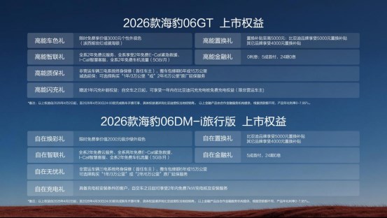 2026款海豹06GT与2026款海豹06DM—i旅行版此次焕新而来,不仅切实回应了用户真实需求,更直观彰显了比亚迪在新能源领域的技术领先性。目前,两款新车已陆续到店,欢迎感兴趣的朋友走进比亚迪海洋网各大门店,亲自感受双豹齐发带来的个性出行新体验。