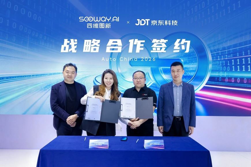 4月24日北京车展现场,四维图新与京东科技正式签署战略合作协议,双方将立足各自核心优势,在AI智能体、汽车合规云等四大领域深度协同。