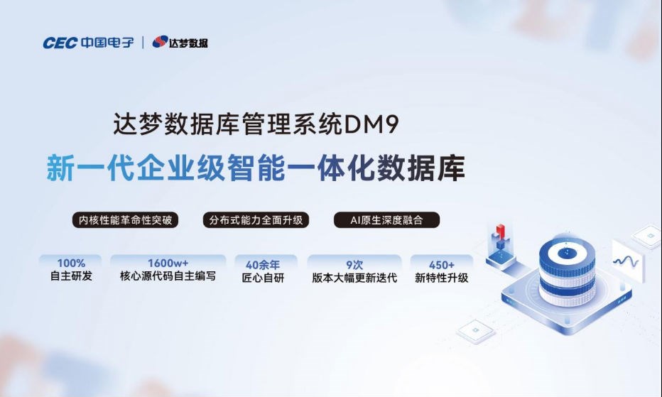 DM9作为新一代企业级智能一体化数据库,是达梦面向AI时代的旗舰产品。在功能、性能、高可用、兼容性、安全等方面全面进化,实现了450余项新特性升级。在架构方面,实现了集中式与分布式一体化,一套代码根,两种部署模式,极大降低了企业数字化转型门槛;在高可用方面,达梦自治容灾集群实现了自动故障感知与自愈切换;在资源组织方面,发布了多租户数据库技术,租户级的数据和负载可整体在线搬迁上云、下云;在AI方面,支持向量与多模,发布了数据库设计智能体和运维智能体。作为达梦从并跑者向领跑者转变的重要标志,DM9是达梦数据迎接AI时代挑战的全新起点,引领数据管理技术迈向智能化新征程。