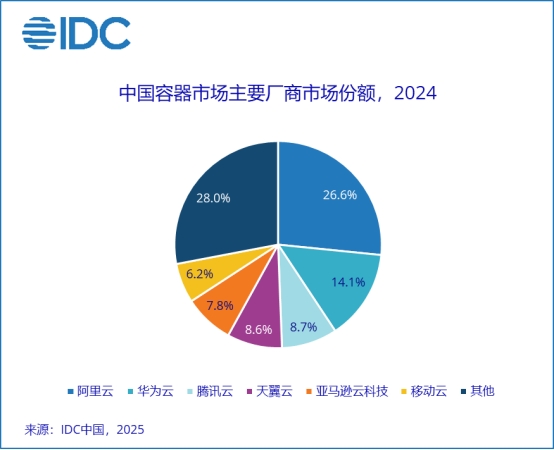 当前,业界普遍认为容器是AI算力的最佳载体,是AI应用开发的天然伙伴。因其易扩展、可移植、能深度适配AI基础设施等关键特性,可实现GPU资源的高效调度、计算服务的弹性扩缩与自动化运维,有效提升大模型训练与推理效率,被普遍视为“AI时代的算力调度大脑”。IDC认为,AI算力需求的大幅提升,推动了2024年中国容器市场高速增长。