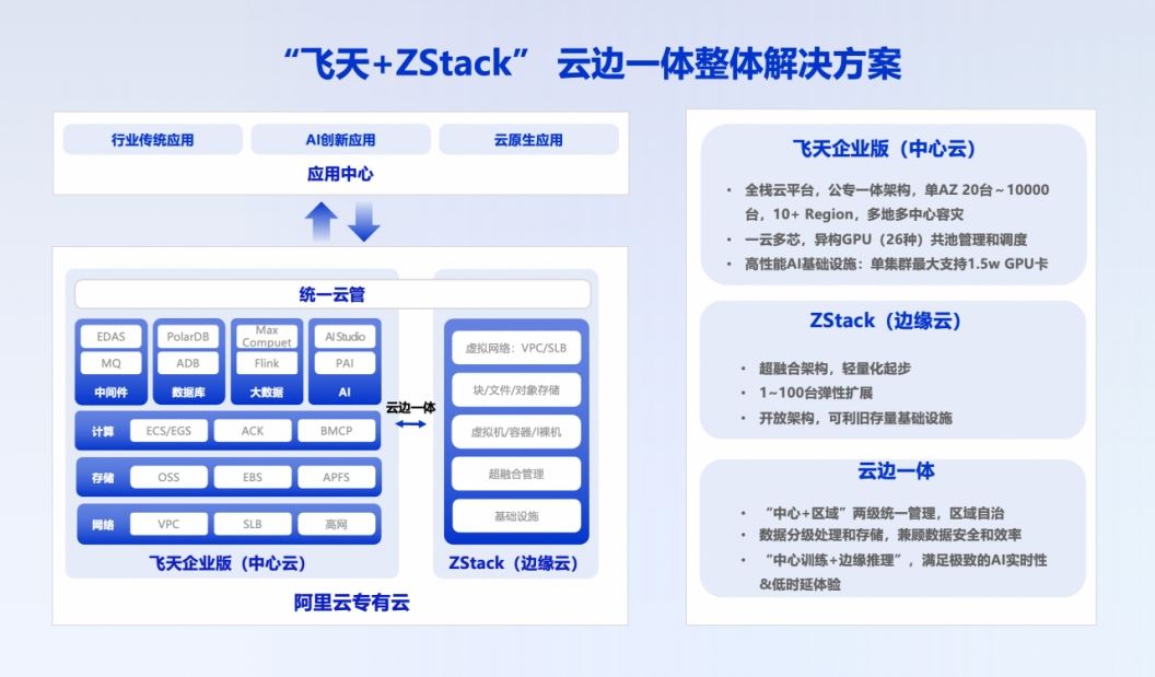 随着企业数智化转型步入深水区,不再需要零散的IT系统,而是一套能统一管理、灵活调用的整体解决方案。在这过程中,阿里云与ZStack可以“互补”。阿里云自主研发的飞天企业版支持一云多芯和大规模算力管理调度,擅长处理海量数据和高强度的AI模型训练;ZStack则以“轻量化、标准化”见长,能够将强大的计算能力快速搬到企业的办公楼、工厂甚至基站侧。此次合作,双方共同构建了业界领先的、覆盖从超大规模数据中心到小型边缘节点的全栈云基础设施解决方案,为企业提供了一条从传统虚拟化架构平滑、高效演进到云平台的完整路径,将把强大的计算能力无缝延伸到离业务最近的地方,让算力像水电一样随用随取。