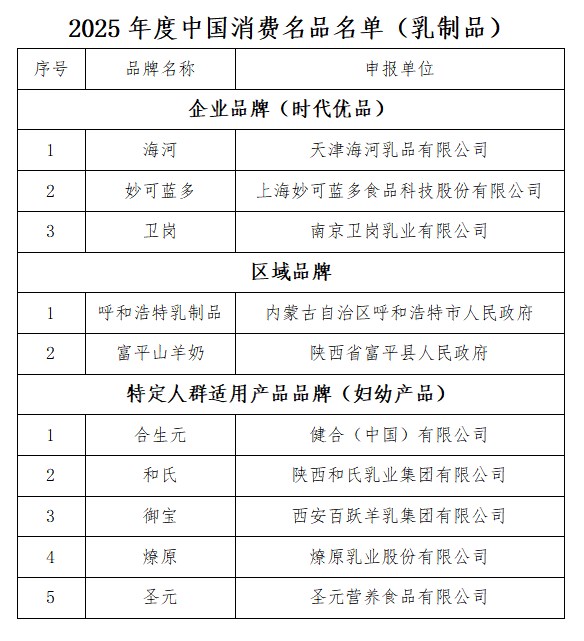 近日,工业和信息化部重磅公布“2025年度中国消费名品名单”,南京卫岗乳业有限公司“卫岗”品牌脱颖而出,成功入选榜单中的“时代优品”。
