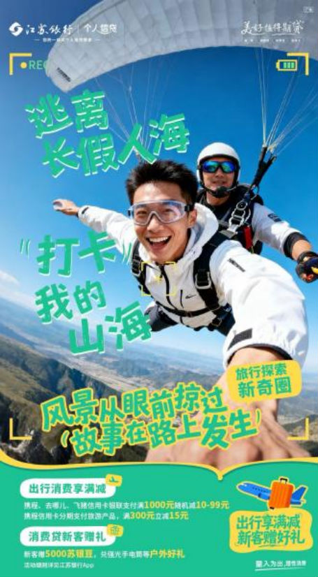 围绕民众节日期间旅行、亲子、潮玩、家居等多元消费需求,江苏银行推出“玩转小长假”系列主题活动,涵盖信用卡支付随机减、宝藏特权双倍积分、消费贷福利限时加码、“撒欢计划”旅行基金抽奖等多重权益。