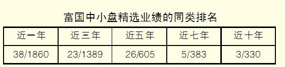 在同类基金中,富国中小盘精选业绩名列前茅,近一年、近三年排名均处于同类业绩的前3%,近十年排名居于同类第三。