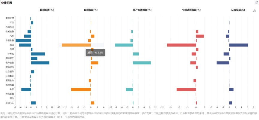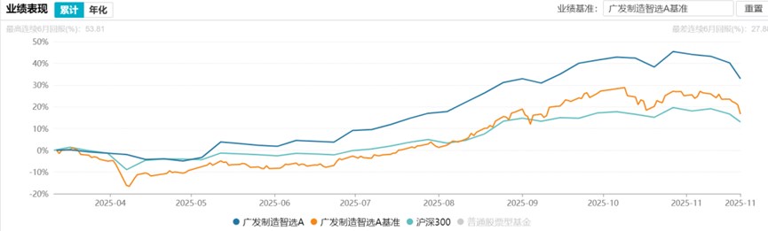 制造智选对标申万制造业指数,持仓行业分布与基准基本相同,主要配置于电子、电力设备、机械和军工等核心制造领域,进行量化增强。