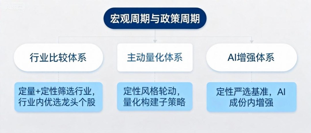 从稳健底仓型产品,到风格增强型和主题增强型产品,杨冬团队当前在管8只公募产品,为投资者提供了策略多元、收益来源低相关性的产品矩阵。而支撑上述产品策略稳定运作的,正是团队系统化的投资方法。