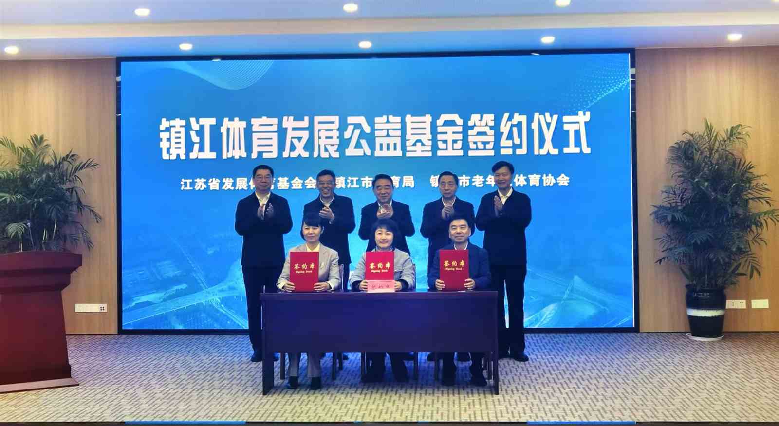 签约仪式上,江苏省发展体育基金会、江苏省职工文化体育协会、江苏省现代休闲体育研究院和镇江世业洲旅游度假区达成户外运动目的地建设合作;友邦人寿保险有限公司江苏分公司总经理杨东强向镇江市体育局颁发“足球青训公益基金合作伙伴”铜牌,双方建立足球青训公益基金合作伙伴关系;江苏省发展体育基金会、镇江市老年人体育协会、镇江市体育局成立镇江市体育发展公益基金。