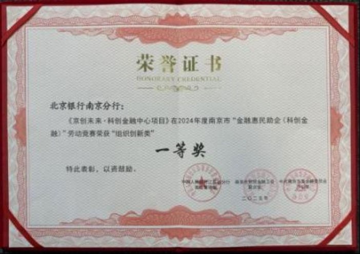 十六载笃行不怠,北京银行南京分行实现总资产与存贷款规模稳步提升,资产质量持续向好。在省内设立3家异地分行,打造特色精品网点31家,先后荣获“江苏省文明单位”“江苏绿色金融发展突出贡献单位”“南京市五一劳动奖状”“江苏省金融惠民助企(科创金融)劳动竞赛一等奖”等多项殊荣。