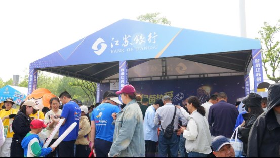 但“苏超”的精彩不只在90分钟里,赛场外同样热火朝天,作为连续两届总冠名商,江苏银行把金融服务玩出了花样,徐州、宿迁、淮安三家分行将展位变成球迷们“来了就不想走”的快乐据点。