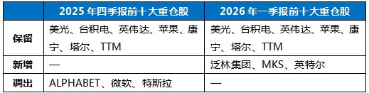 对比2025年四季报和2026年一季报,国富全球科技互联的前十大重仓股变动如下: