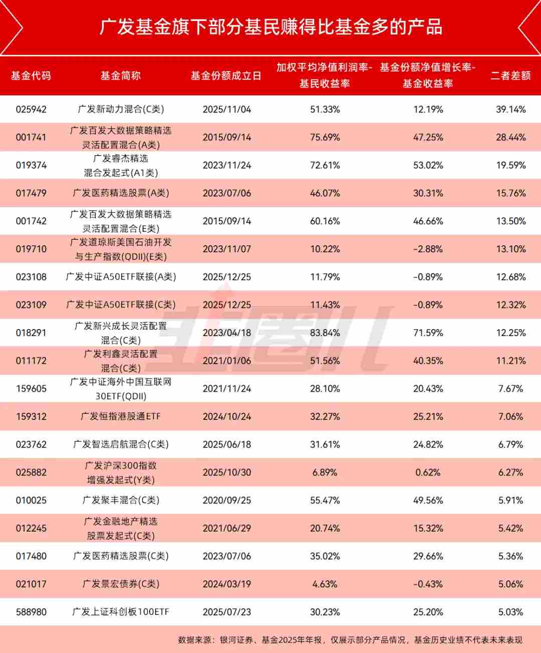 这个数字体现了广发基金旗下公募产品为基民赚到的利润规模。