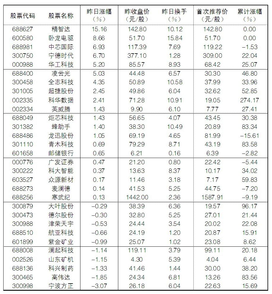 大众30指数成份股中,17日涨幅前五位的分别是中芯国际、宁德时代、华工科技、凌云光、全志科技,涨幅分别为6.93%、6.70%、5.20%、5.03%、4.35%。
