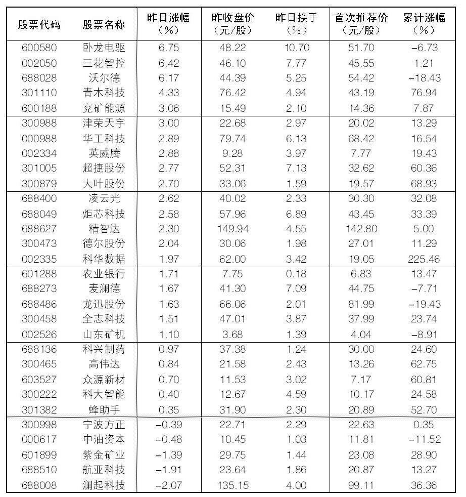 2025年10月20日“大众30”成份股报告