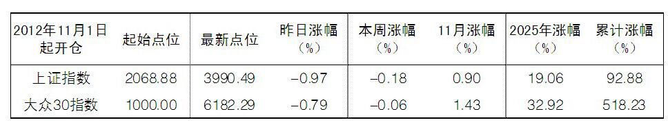 本报综合消息 本周,大盘呈现冲高回落的走势,上证综指下跌0.18%,深证成指下跌1.40%,创业板指下跌3.01%,大众30指数下跌0.06%。