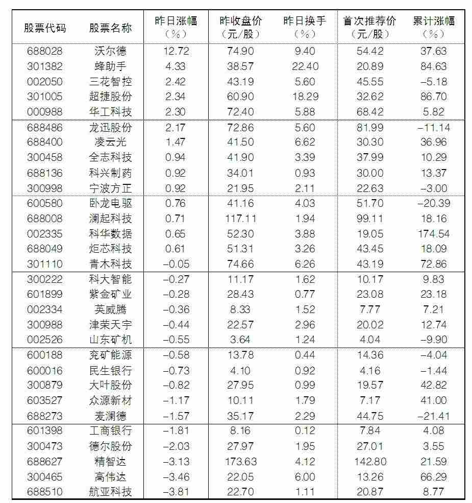大众30指数成份股中,26日涨幅前五位的分别是沃尔德、蜂助手、三花智控、超捷股份、华工科技,涨幅分别为12.72%、4.33%、2.42%、2.34%、2.30%;跌幅榜上,航亚科技、高伟达、精智达、德尔股份等跌幅居前。