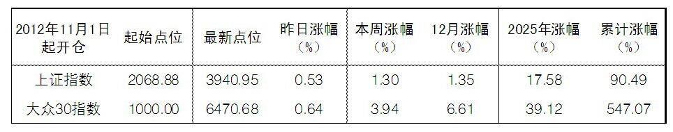 本报综合消息 周四,沪深A股震荡走高,航天装备、电机制造、家电零部件等板块领涨,贵金属、能源金属、元器件等板块走势较弱。12月25日,上证综指上涨0.47%,深证成指上涨0.33%,创业板指上涨0.30%,大众30指数上涨0.90%。
