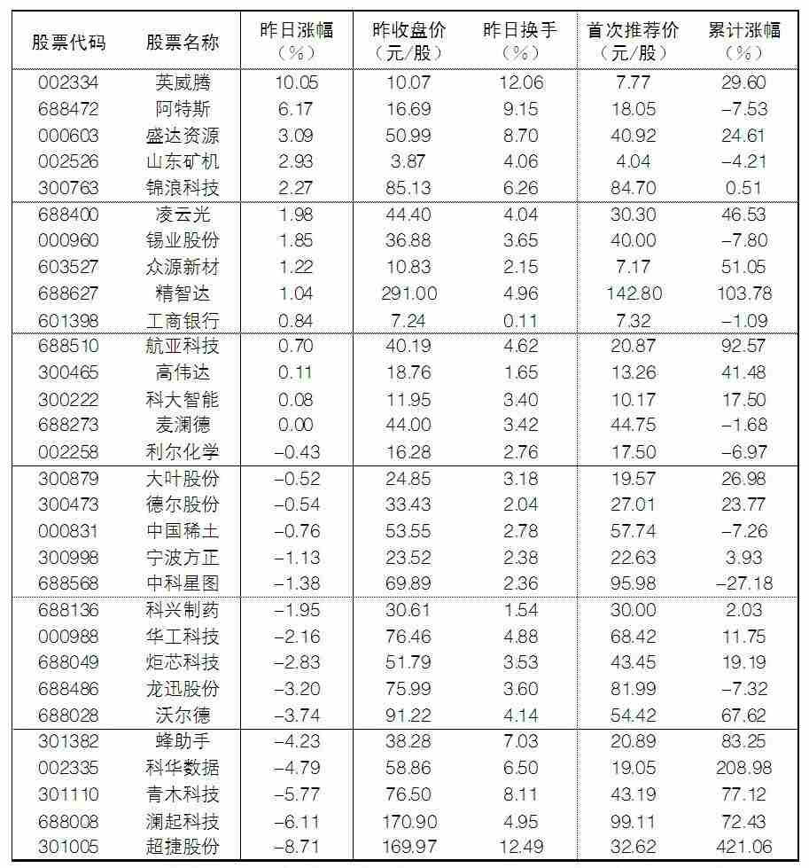 “大众30”成份股每日报告
