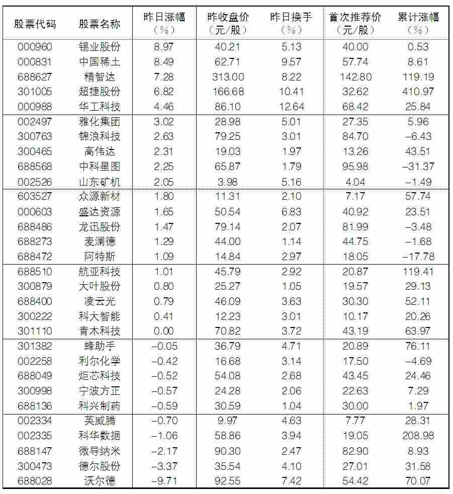 大众30指数成份股中,26日涨幅前五位的分别是科华数据、航亚科技、超捷股份、炬芯科技、华工科技,涨幅分别为4.66%、4.35%、3.47%、2.85%和2.85%;跌幅榜上,雅化集团、中国稀土、微导纳米、阿特斯等跌幅居前。