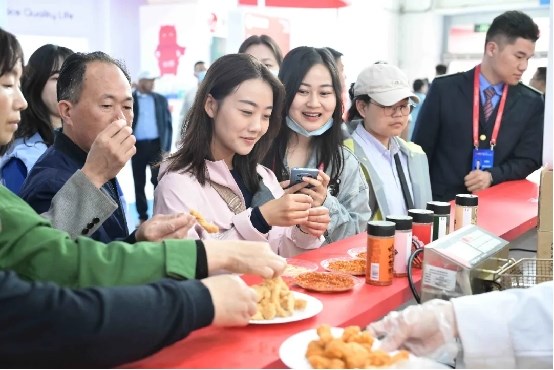禽产品现场炸制香气足,便捷、口感受青睐禽产品展区,双汇优选鸡调理系列中的鸡米花、香酥鸡块、香煎鸡排、小酥肉等产品持续进行现场炸制。金黄色的鸡米花、小酥肉香气扑鼻,观众纷纷上前品评。“用空气炸锅可以吗?”“能冷冻保存多久?”工作人员一边制作一边解答提问,产品便捷性与口感赢得观众一致认可。