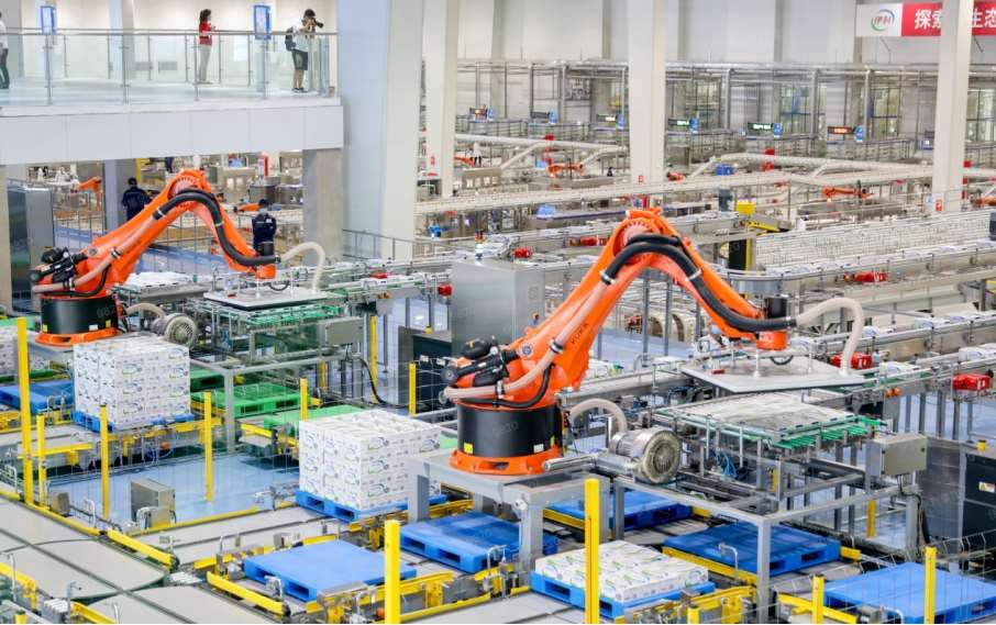 2021年9月,吉宏智能环保包装产业园作为伊利现代智慧健康谷首批三大配套产业项目之一,正式破土动工,并于两年后建成投产。每天,100多万只纸箱从这里出发,送往伊利液态奶、奶粉、冷饮、酸奶、奶酪等各个事业部的产线。走进车间,ERP系统打通了订单与仓储,生产线全自动运转,机器人码垛、智能物流车穿梭其间——这是一座几乎没有人工干预的智能化工厂。