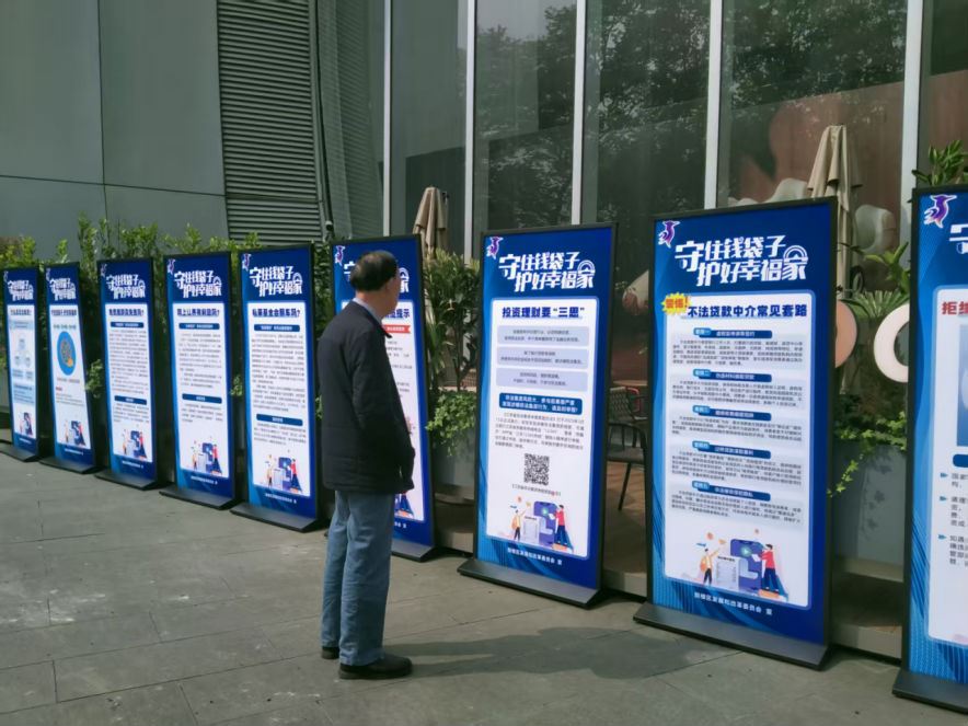 “2026防范非法金融活动普法宣传知识问答”“规避非法集资陷阱‘三要、三不要’”“识别常见金融网络乱象”“不法贷款中介常见套路”……4月15日,一个个展板在鼓楼金茂广场依次排开,图文并茂的宣传折页与讲解资料有序摆放在各个展台上,内容涵盖非法金融活动、防诈骗、反洗钱等金融安全相关知识,吸引了不少市民驻足观看,咨询交流。