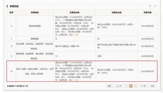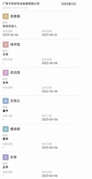 来自国家企信平台和企查查的工商变更登记信息显示,广西今年好的历史股东苏日茂(持股4%)、吴信让、徐洪宽(持股9%)以及田园生化(持股30%)均于2023年6月6日登记退出(见图一)。同日,苏日茂、唐进斌、徐洪宽、左军等登记卸任高管,企查查信息还具体显示,前三人卸任董事,左军卸任监事(见图二)。